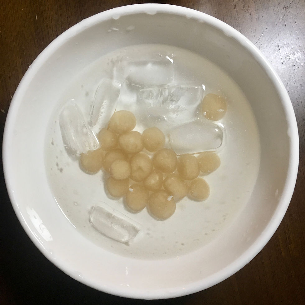 2. Toss the tapioca pearls and put it into the ice water to stop the pearls from cooking.